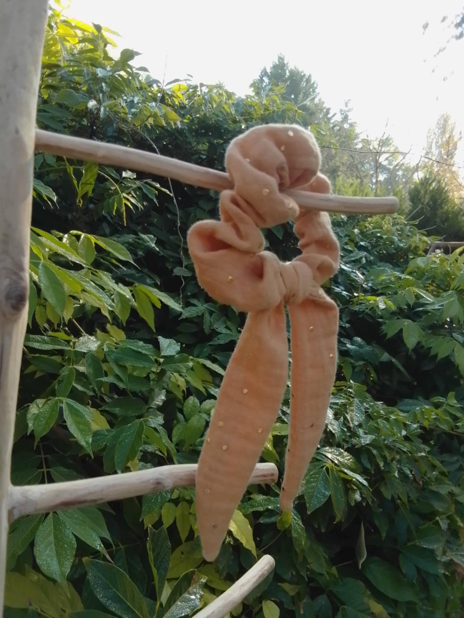 Possibilité d'enlever le nœud afin de transformer le foulchie en un simple chouchou.